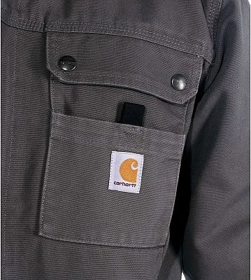 Diese gefütterte Jacke für Männer hält Kälte, Wind und harte Arbeitstage aus. Durch das Duck-Baumwoll-Material ist die Jacke strapazierfähig ohne starr zu sein. Sie ist an Körper und Kapuze mit weichem Baumwollfleece gefüttert; die Ärmel sind mit weich gewebtem Nylon ausgekleidet.