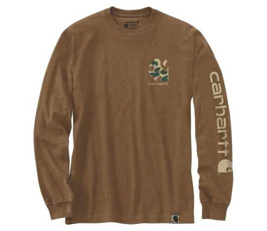 Carhartt Heavyweight Longsleeve Camo Logo Graphic Braun Meliert