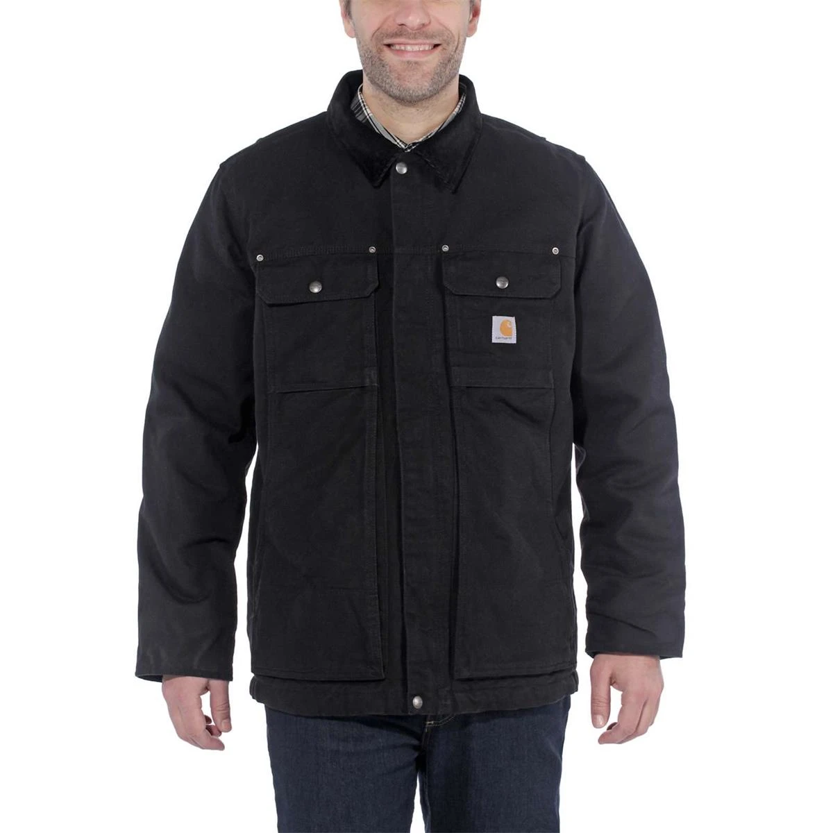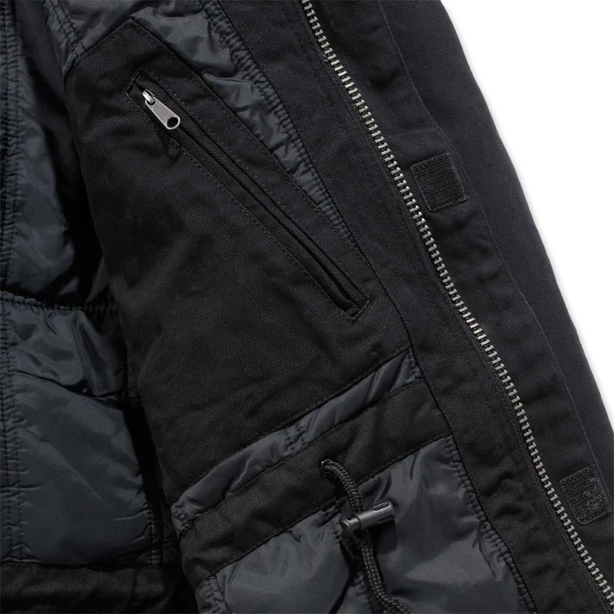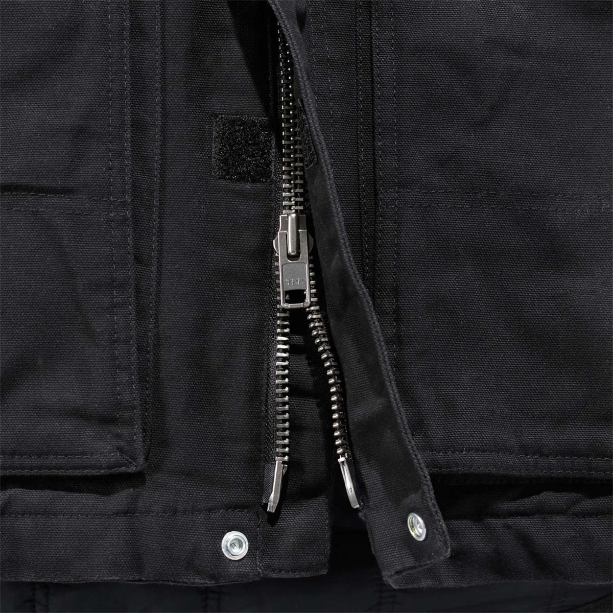 - Durchgehender Zweiwege-Frontreißverschluss mit Sturmklappen innen und außen mit Klett- und Druckknopfverschluss