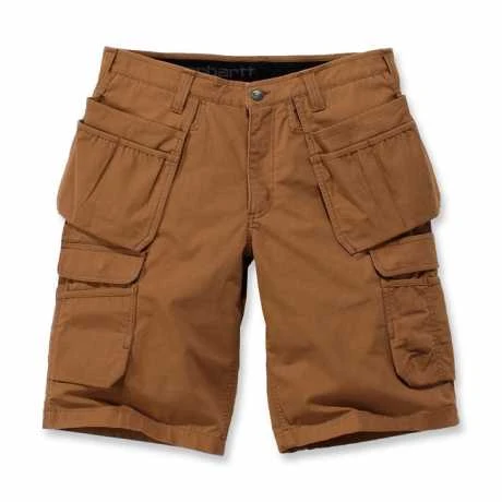 Carthartt Rugged Flex, Relaxed Fit, Ripstop Cargo Short. Ob Sie hart arbeiten oder ein Zelt aufbauen, diese Herren-Shorts sind an kritischen, stark beanspruchten Stellen wie den Taschenrändern mit Cordura® verstärkt. Ein entspannter Schnitt, der an der Taille sitzt, bietet genau die richtige Menge an Stretch, um sie am Gesäß und an den Oberschenkeln bequem zu halten.